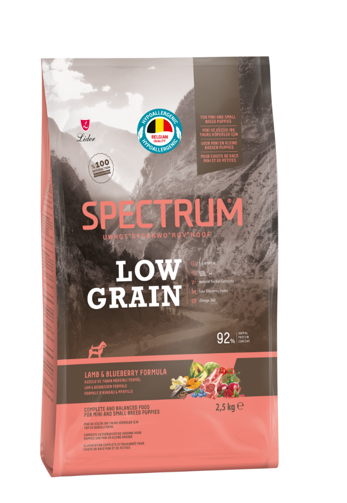 SPECTRUM LOW GRAIN KÖPEK MAMASI 2,5 KG YAVRU MINI IRK KUZU & YABAN MERSİNİ *SPL003
