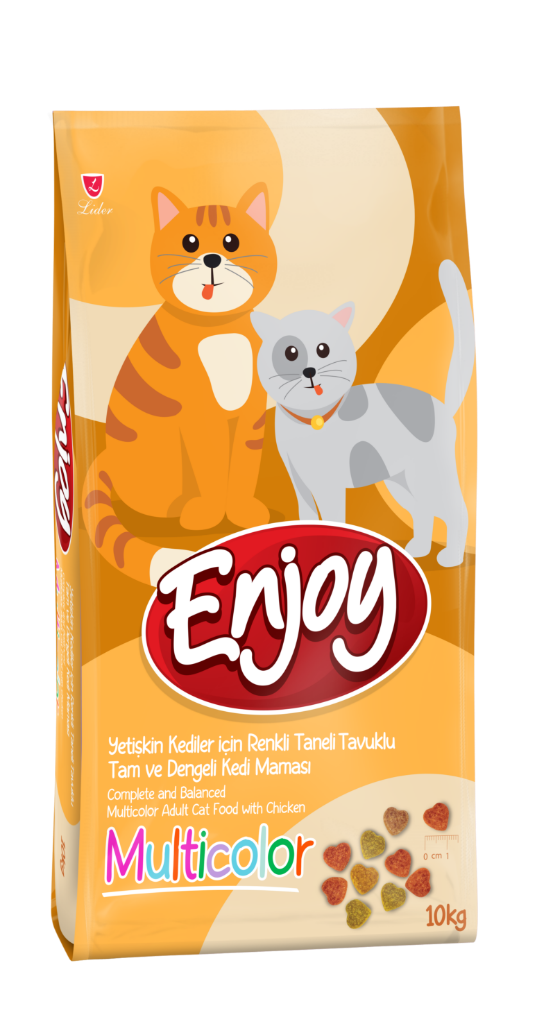 Enjoy, kedi maması çeşitleri arasında kedilerinize rahatlıkla ve güvenle verebileceğiniz bir üründür. Yetişkin kedilerinizin günlük ihtiyacı olan protein, vitamin ve minerallere sahip olan Enjoy, zengin ve faydalı besin içeriği ile kedilerinizin keyifle tüketebileceği bir kuru mamadır. Kedi sahipleri, kedilerine mama alırken içerik açısından zengin ve lezzetli ürünleri tercih ederler. Enjoy, kedi sahiplerinin kedi maması alırken dikkat ettikleri besin içeriğine sahiptir. Kedi severlerin rahatlıkla ve güvenle kedilerine verebilecekleri bu üründe, evcil hayvanlar için faydalı takviyeler olan Omega 3 ve Omega 6 bulunur.Mamadaki Omega 3 ve Omega 6 katkıları, kedilerinizin bağışıklık sisteminin güçlendirilmesine ve hastalıklara karşı savunma gücünü artırmalarına destek olur. İçeriğindeki faydalı vitamin, mineral ve protein katkıları kedilerinizin yumuşacık parlak tüylere sahip olmasında önemli rol oynar.Petshop ve bahçe kategorisinde yer alan mamanın içerisinde bulunan taneler, şekil ve büyüklük açısından kedilerinizin beslenmesine yardımcıdır. Bu küçük ve kolay sindirilebilir taneler, kedilerinizin zorlanmadan ve rahat beslenmesine yardımcı olur.