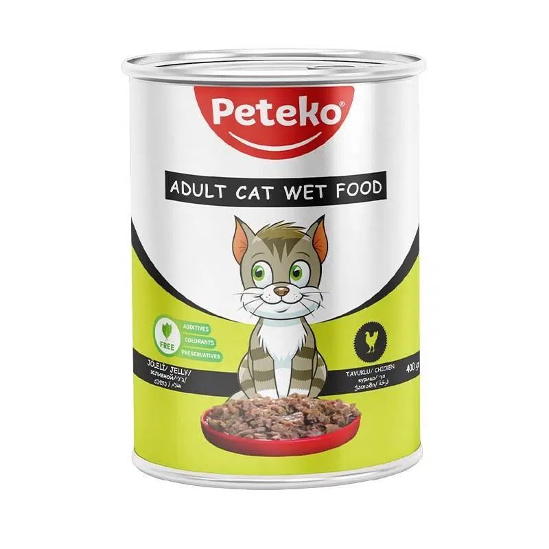 PETEKO KONSERVE YAŞ KEDİ MAMASI TAVUKLU JELLİ 400GR