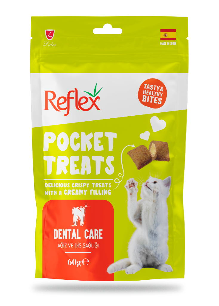 Reflex Pocket Treats Ağız ve Diş Sağlığı için Kedi Ödül Maması 60gr Reflex Pocket Treats, içeriğindeki özel formülü sayesinde diş sağlığını destekleyen bir yapıya sahiptir. Kediler için özel olarak formüle edilmiştir. Analiz Tablosu Ham Protein %29 Ham Yağ %20 Ham Lif %3,6 Ham Kül %6 İçerik Bitkisel Kökenli Türevler Et ve Hayvansal Türevler Tahıllar Sıvı ve Katı Yağlar Bitkisel Protein Özütleri Mineraller Besin Katkı Maddeleri Vitamin A 6.000 IU/kg Vitamin D3 400 IU/kg Vitamin E 100 mg/kg, Taurin 1.000 mg Kullanım Talimatı Oda sıcaklığında saklayınız.