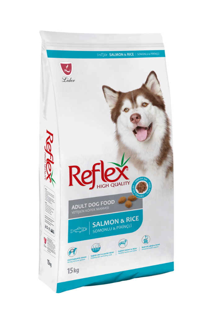 Reflex Balıklı ve Pirinçli Yetişkin Köpek Maması 15kg Kaliteli protein içeriği ve zengin vitamin ve mineral içeren Reflex Fish & Rice yetişkin bir köpeğin ihtiyaç duyduğu bütün besin öğelerine sahiptir.